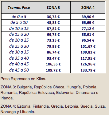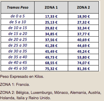 Tarifa: 5,99€ hasta 5 kg. Luego cada 5 Kg se incrementará en 1€.